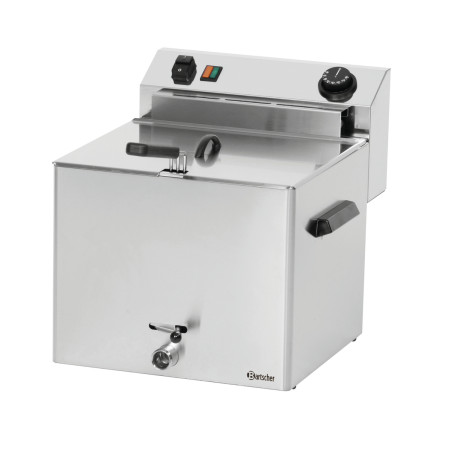 Der Behälter der Fritteuse verfügt über einen Ablasshahn zum Ablassen des Öls, wodurch die Reinigung einfach ist. Die Fritteuse ist mit einem Sicherheitsthermostat für Überhitzungsschutz ausgestattet.