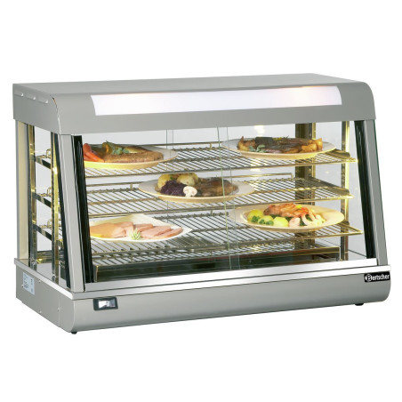 The temperature range of this display case is between 30 and 90°C. The adjustment is thermostatic and it is dry heated.